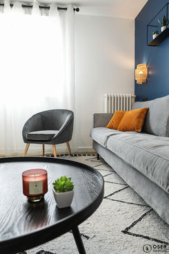 Sélection et mise en place du mobilier et de la décoration par nos soins.